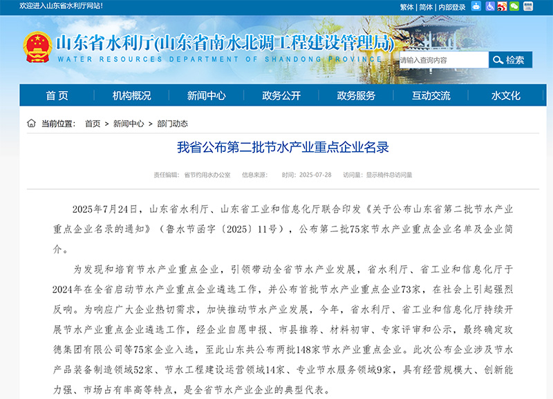 恭賀我司通過(guò)山東省第二批節(jié)水產(chǎn)業(yè)重點(diǎn)企業(yè)